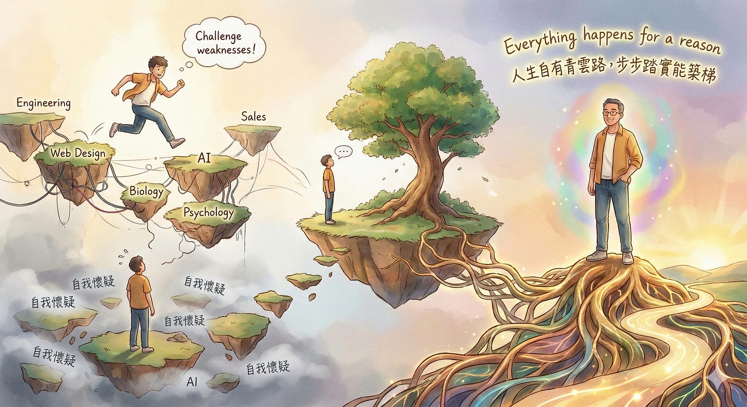 然而,時間過去,我才發現問題所在。我每個領域都懂一點,卻沒有一項真正深耕。學過的技能,久了不用便漸漸生疏;留下的,僅剩模糊的印象與解決問題的方向感。我曾經以「跨領域人才」自豪,以為自己什麼都能溝通、什麼都能參與,直到看見當年深入某個領域鑽研的同儕們,早一步被明星實驗室培育、出國深造、被企業爭搶,我才驚覺自己好像什麼都會,卻什麼都做不出來。